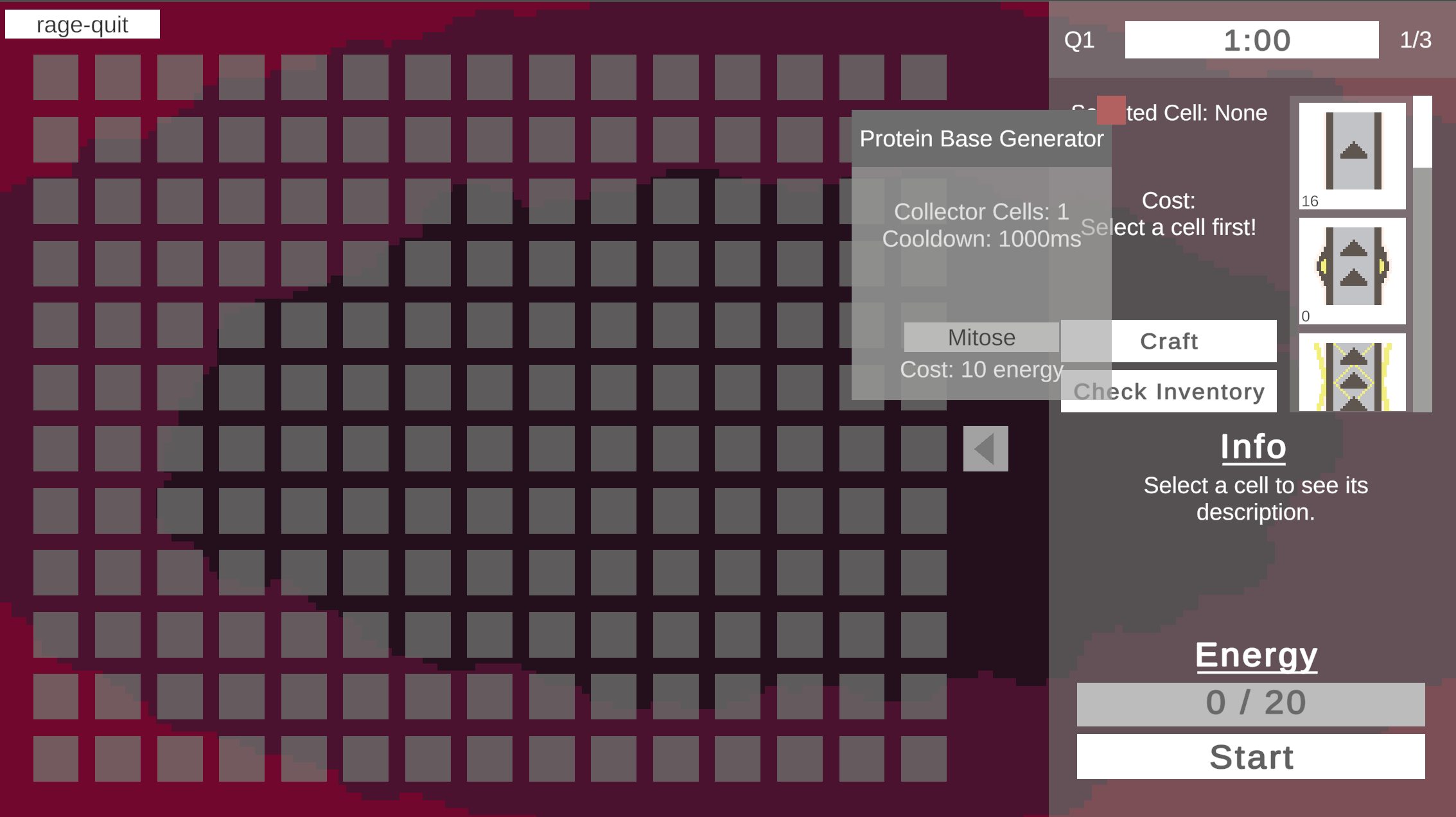 If you ever find yourself with leftover energy, you can upgrade the Protein Base output by clicking on that small grey square near the middle with a triangle on it.
